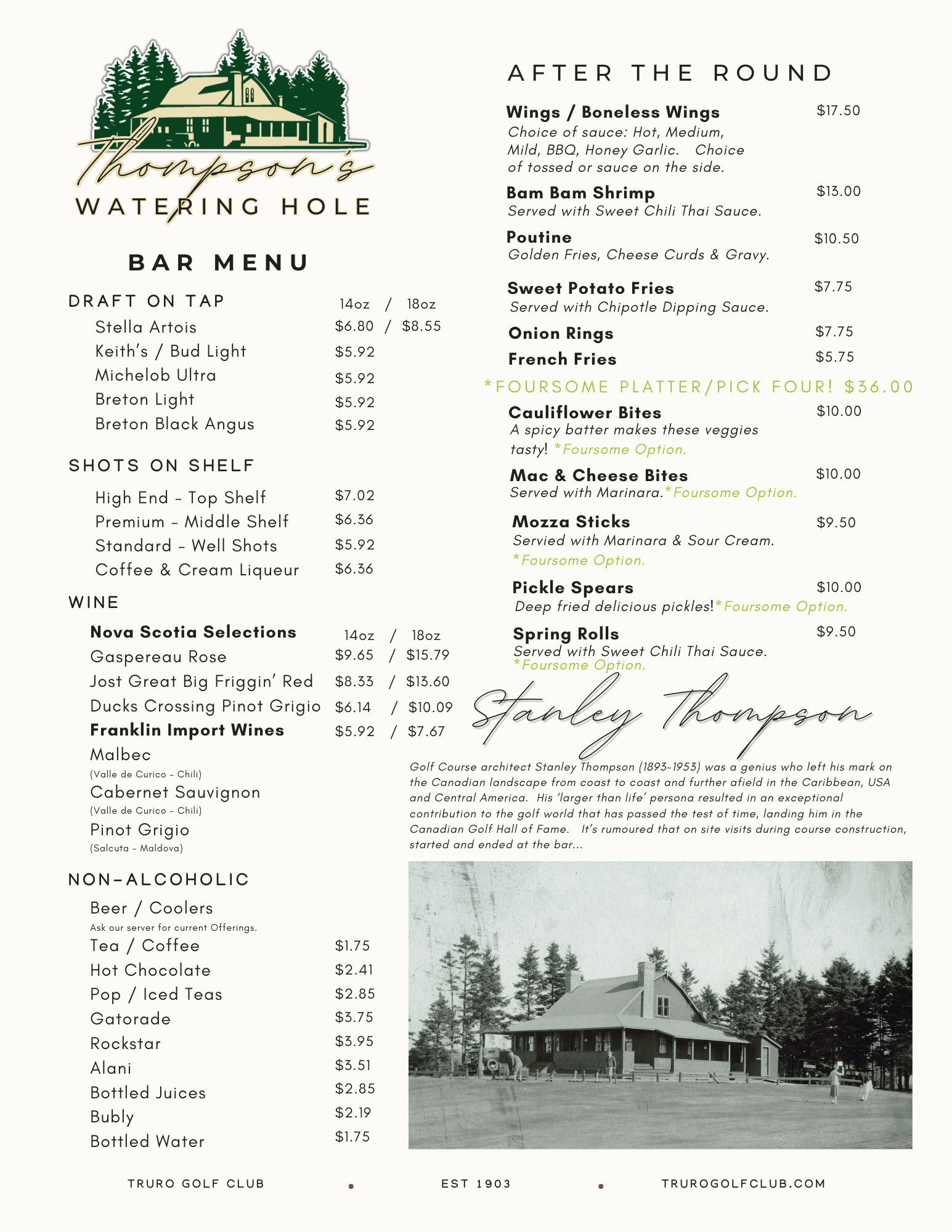 On-course Beverage Cart services are available with services posted daily (weather and play dependent).