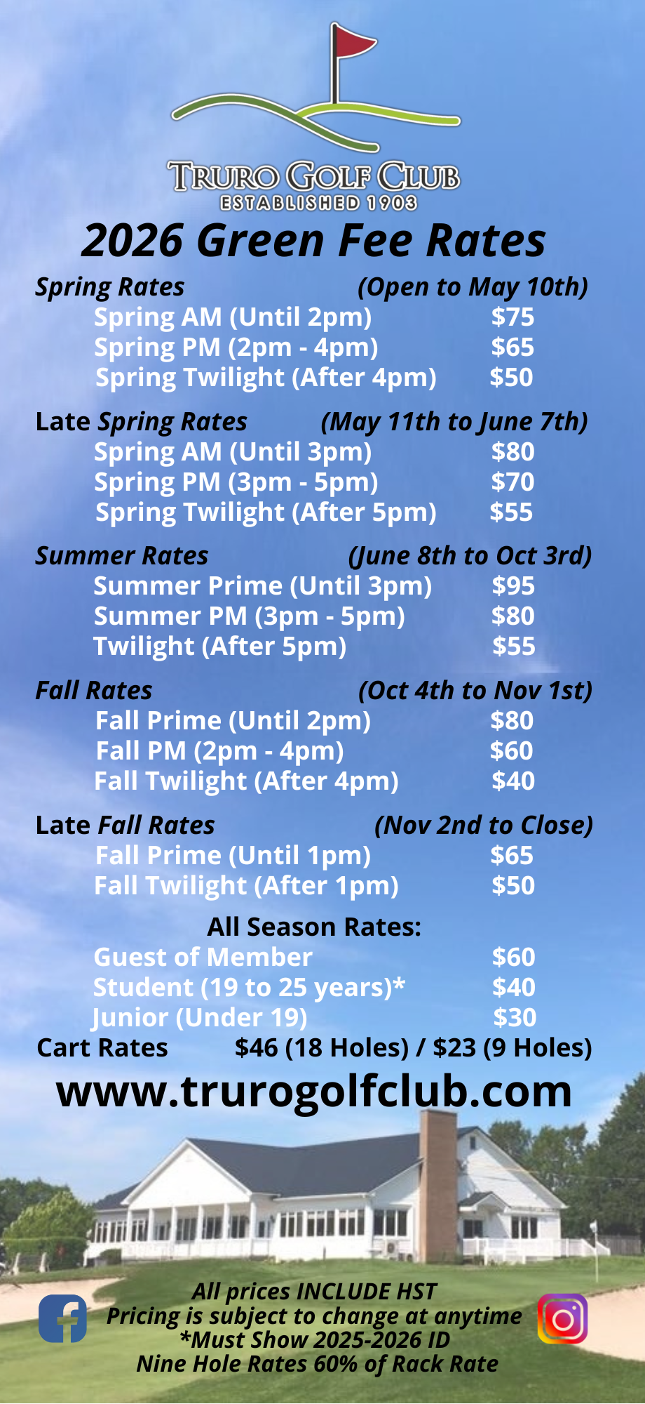 2025 Golf Visa Rates – Only Valid Weekdays after 10am with a Power Cart Rental, or Weekends after 11am, with a Power Cart Rental (You must rent a power cart when using Golf Visa at the Truro Golf Club).